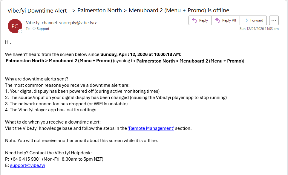 Once your schedule, exclusions, and recipients are configured and saved, Vibe will begin tracking device check-ins immediately, expect to see emails similar to this: