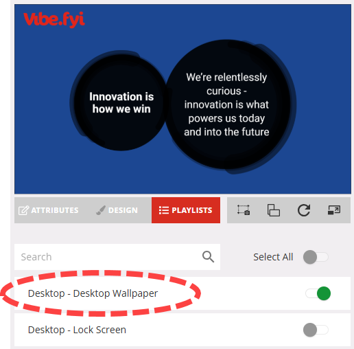 Your wallpaper playlist, rotates image-based screenshots of scheduled static content, designed to support and reinforce, rather than lead communication.