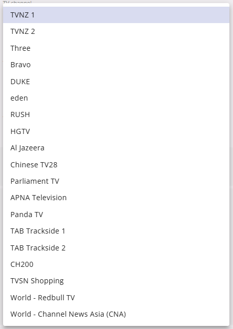 Choose the TV channel dropdown