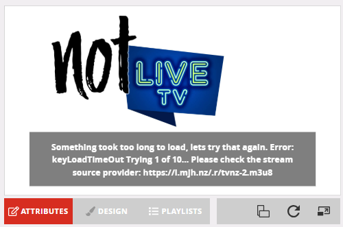 You will almost certainly see a timeout error (as below) when you first select a channel. Be patient to allow time for the stream to load.