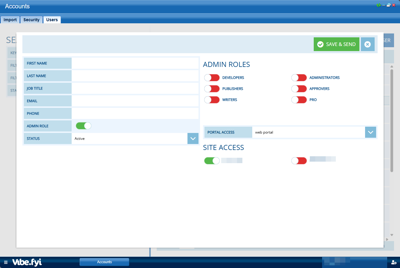 - Open your web portal login page (URL provided by Vibe Support Team)