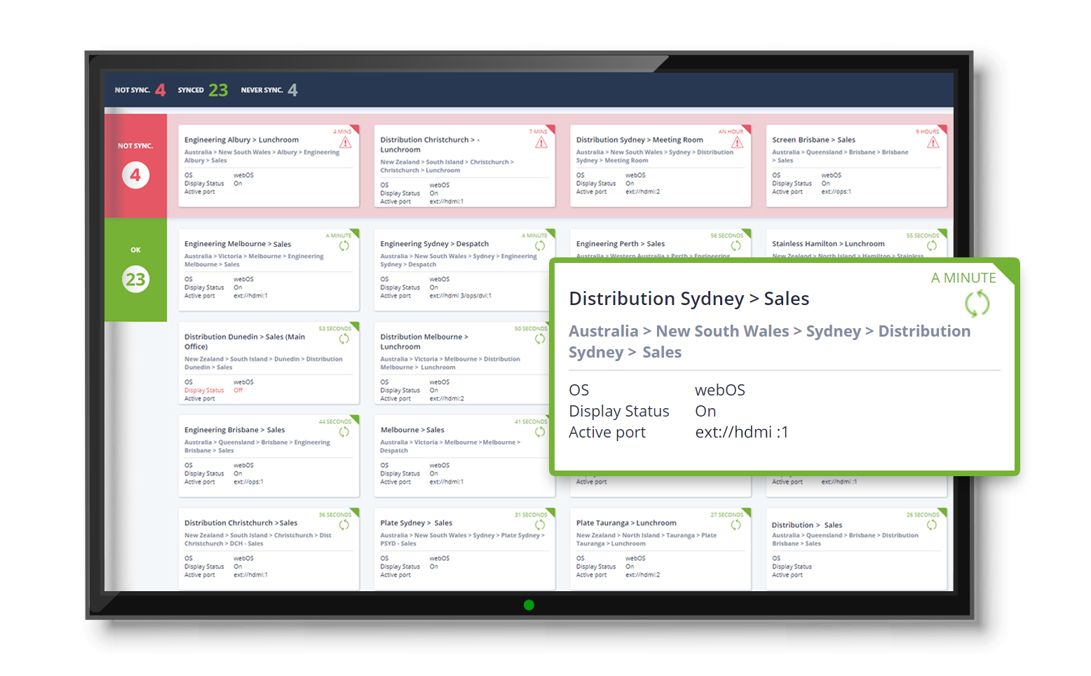 Start by opening the dashboard to identify which screens are affected. Then check whether the issue is isolated to one device or multiple screens before troubleshooting further.
