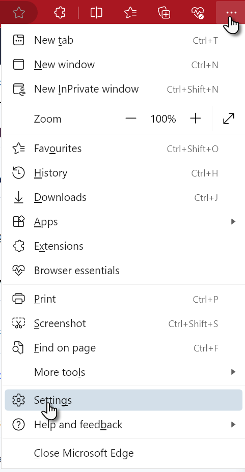 1. Open Edge and select Settings