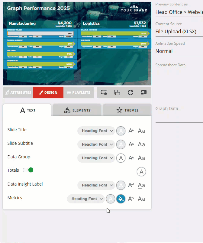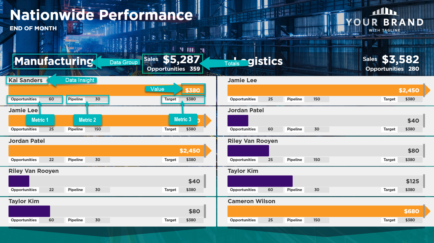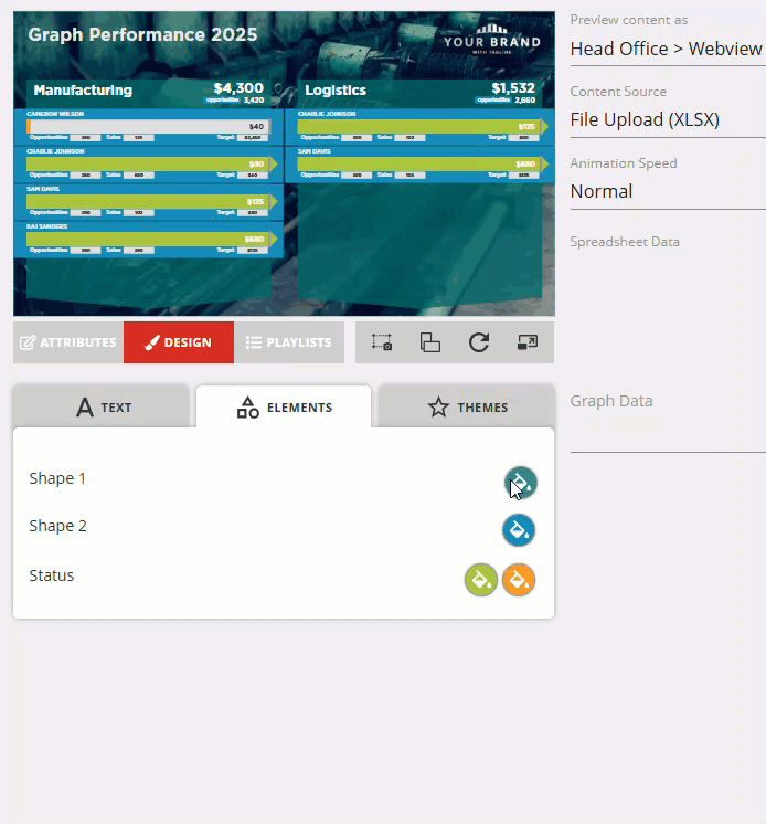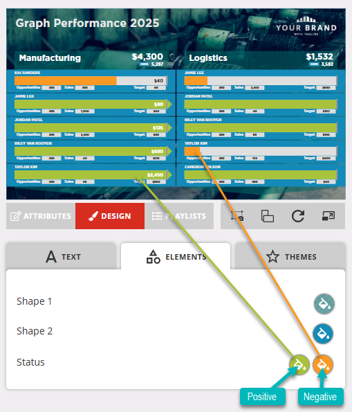 Negative Color Picker: This picker lets you assign a color for negative performance indicators. Opt for a contrasting color that effectively highlights areas needing attention or improvement.