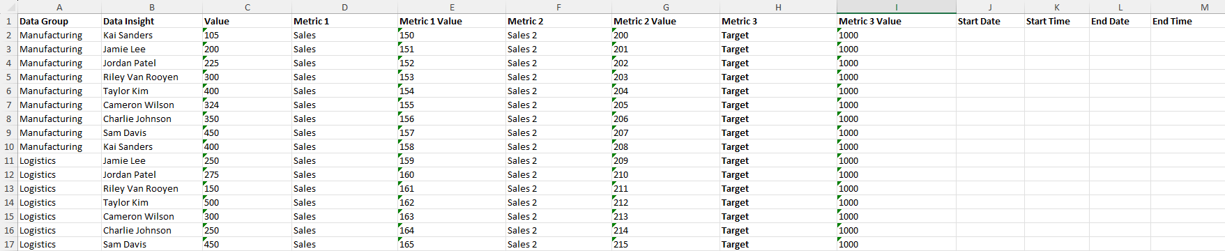 | Data Insight | Free format. Bold and underline formatting is supported. |